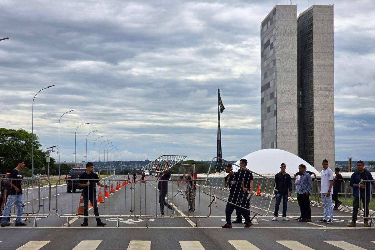 O trânsito na região do Congresso Nacional foi fechado nesta quarta-feira (8) para o evento em memória dos dois anos dos ataques antidemocráticos de 8 de janeiro de 2023.