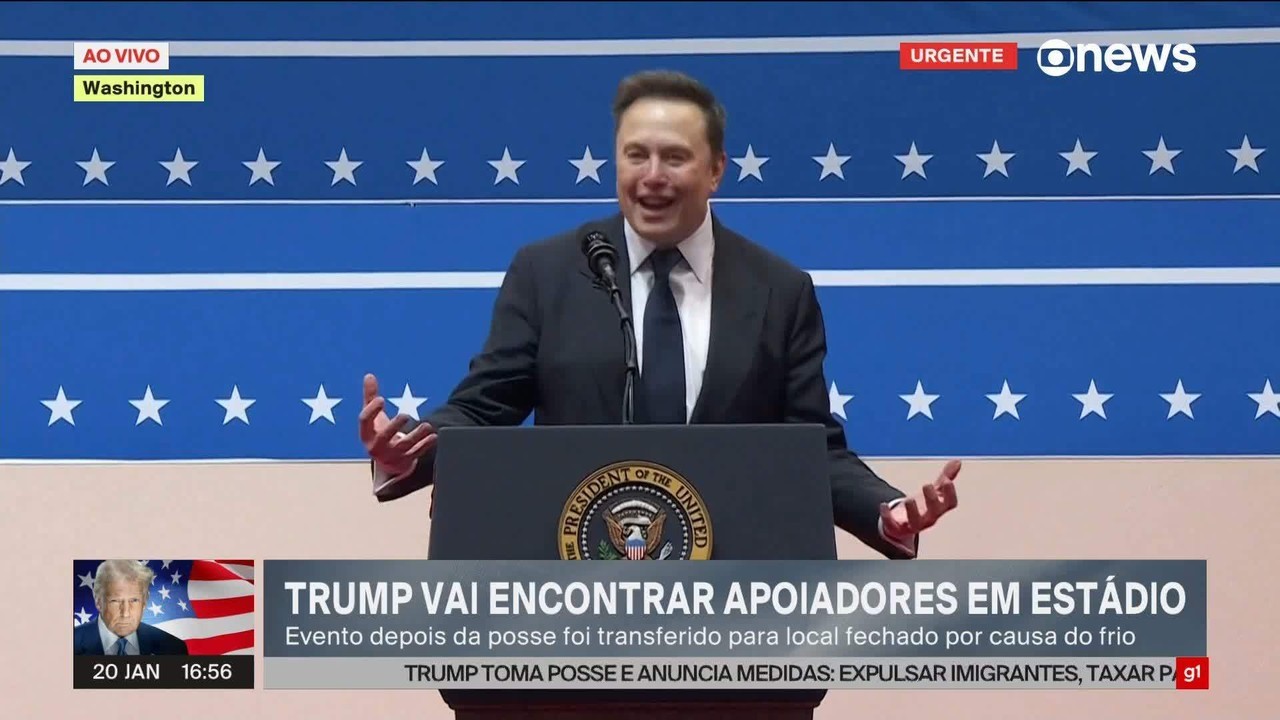 Bilionário nascido na África do Sul fará parte do governo Trump. Um dos homens mais ricos do mundo, é dono da rede social X, da fabricante de carros elétricos Tesla e da SpaceX, de voos espaciais. Elon Musk faz discurso efusivo em arena onde estão apoiadores de Trump em Washington