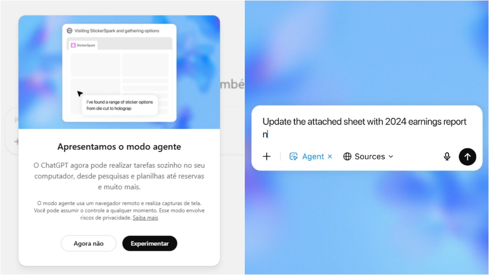 Há um mês, a OpenAI apresentou o agente do ChatGPT (ChatGPT Agent, em inglês). A empresa disse que “o robô agora pode trabalhar para você usando um computador próprio. De quebra, também pode realizar tarefas complexas do início ao fim”.