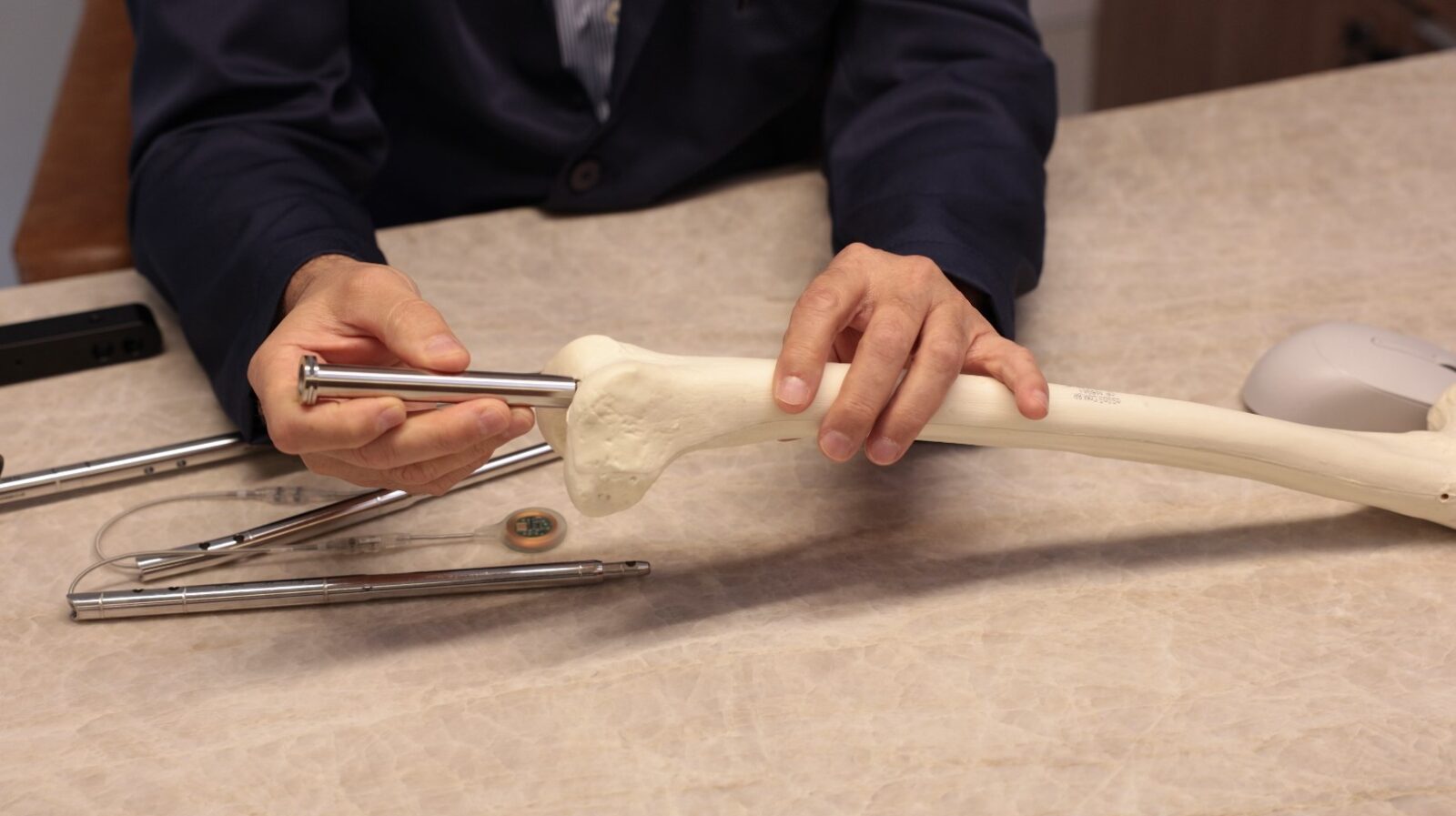 “É o sistema de alongamento ósseo mais moderno que existe. Você tem as opções de usar o fixador externo, que são aquelas famosas gaiolas. Depois foi criado o sistema intramedular mecânico, que é uma parecido com esse, mas que o paciente tinha que ficar fazendo movimentos, girando o pé, para o osso crescer”, afirma o médico.