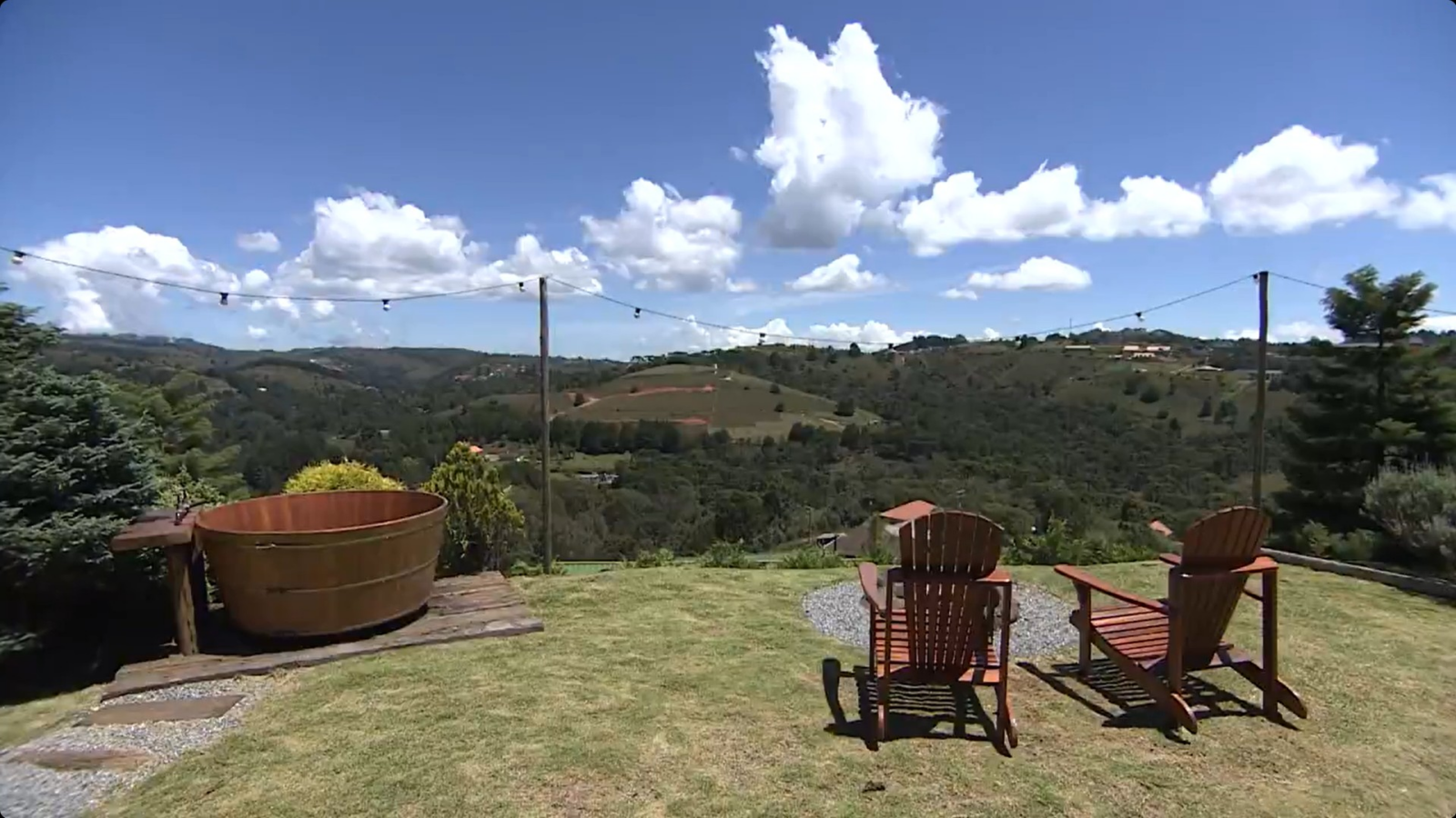 Hospedagem fica no alto de uma montanha e segue o conceito de ‘glamping’, que é caracterizado por acomodações luxuosas. Acampamento de luxo tem cabanas com infraestrutura de casas e até ofurô
