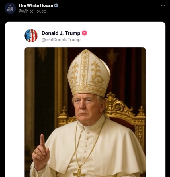 Byadminmaio 3, 2025O presidente dos EUA, Donald Trump, publicou na Truth Social uma imagem criada por inteligência artificial em que aparece vestido como Papa Source...