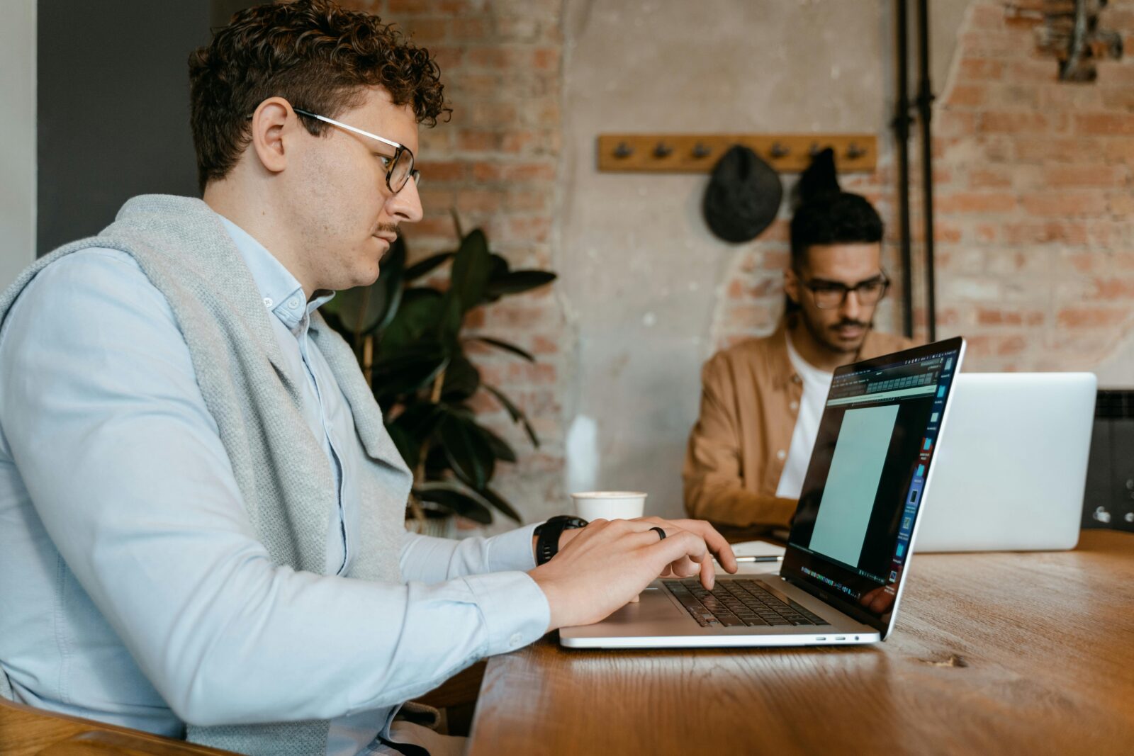 Veja quais são as configurações ao pesquisar por um novo notebook em diferentes categorias. Pessoas trabalhando no notebook
