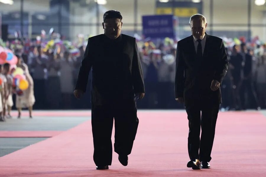 O ditador russo, Vladimir Putin, e o ditador norte-coreano, Kim Jong-Un: países fortaleceram parceria no ano passado (Foto: Gavril Grigorov/EFE/EPA)