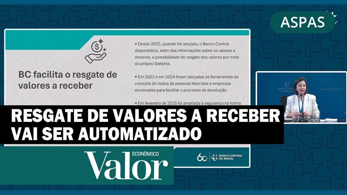 Já as mudanças do SVR entram em vigor a partir de terça-feira, dia 27 de maio. O cidadão poderá automatizar as solicitações de resgate de valores esquecidos na plataforma do SVR. A expectativa do BC é que essa nova funcionalidade impacte mais as solicitações e devoluções futuras. Atualmente existem R$ 9,13 bilhões em valores a receber.