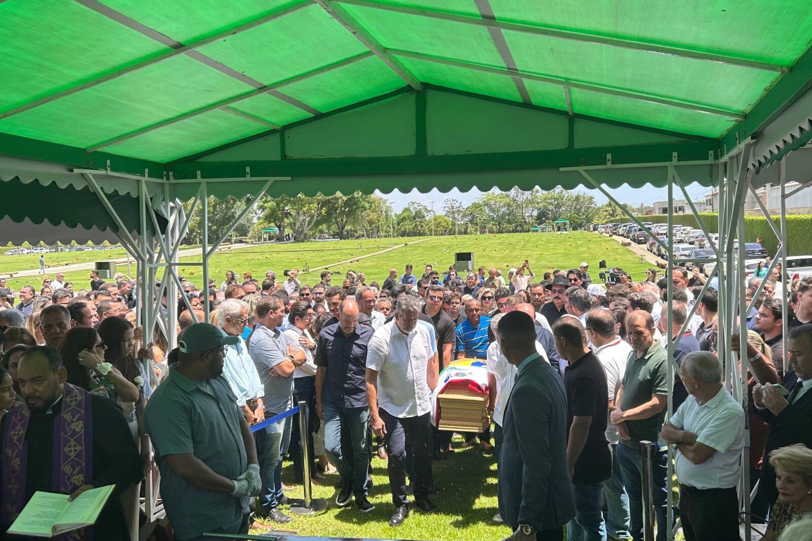 O deputado federal Hugo Motta (Republicanos-PB), apontado como favorito para presidir a Casa a partir do próximo mês, o ex-presidente da Câmara Eduardo Cunha, o governador do Distrito Federal, Ibaneis Rocha (MDB), e os ministros André Fufuca (Esporte) e Celso Sabino (Turismo) estiveram entre os presentes no cemitério Parque das Flores.