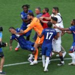 A briga mencionada por Luis Enrique começou logo após o apito final. Inicialmente, o volante Andrey Santos, do Chelsea, e com o lateral Nuno Mendes, do Paris Saint-Germain, estavam discutindo, até que outros jogadores tentassem separar e acabassem aumentando a confusão. O técnico do PSG discutiu com João Pedro, agrediu o brasileiro no rosto e precisou ser segurado por Presnel Kimpembe.