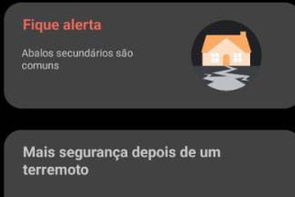 Moradores de São Paulo receberam na madrugada desta sexta-feira (14) um alerta de terremoto com magnitude 5,5. O alerta, recebido por celular do sistema Android, afirma que abalos secundários são comuns e dá dicas de segurança.