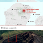 O monte, na verdade, é um vulcão. Destino turístico conhecido do país asiático para trekking, o Rinjani também dá nome a um parque nacional na ilha de Lombok, onde está localizado.