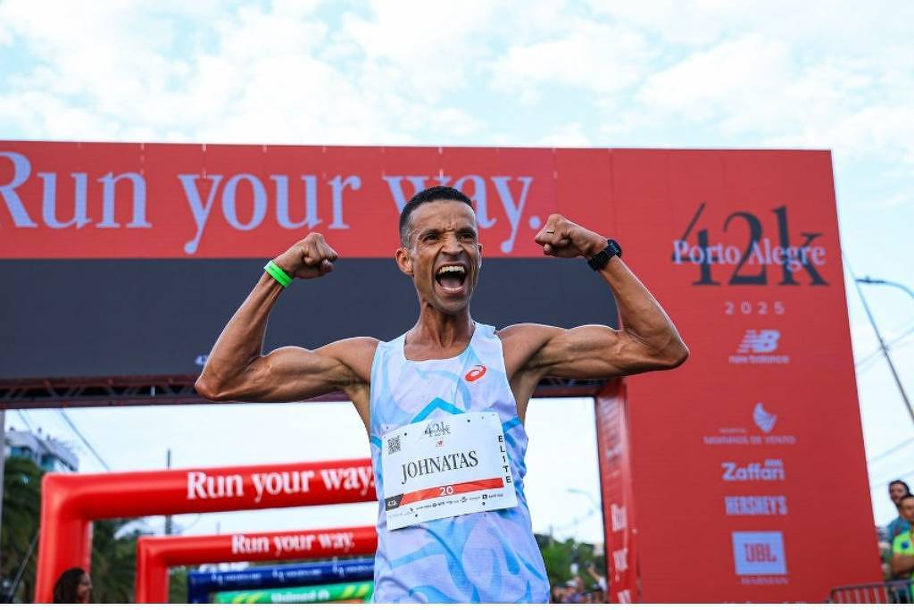 Com tempo de 2h12m45s, Johnatas Cruz venceu domingo passado (27) a maratona NB de Porto Alegre, quebrando o recorde das provas de 42km da capital gaúcha, de 1994. Em 2023, fez seu recorde pessoal: 2h10m43s na maratona de Hamburgo (Alemanha).