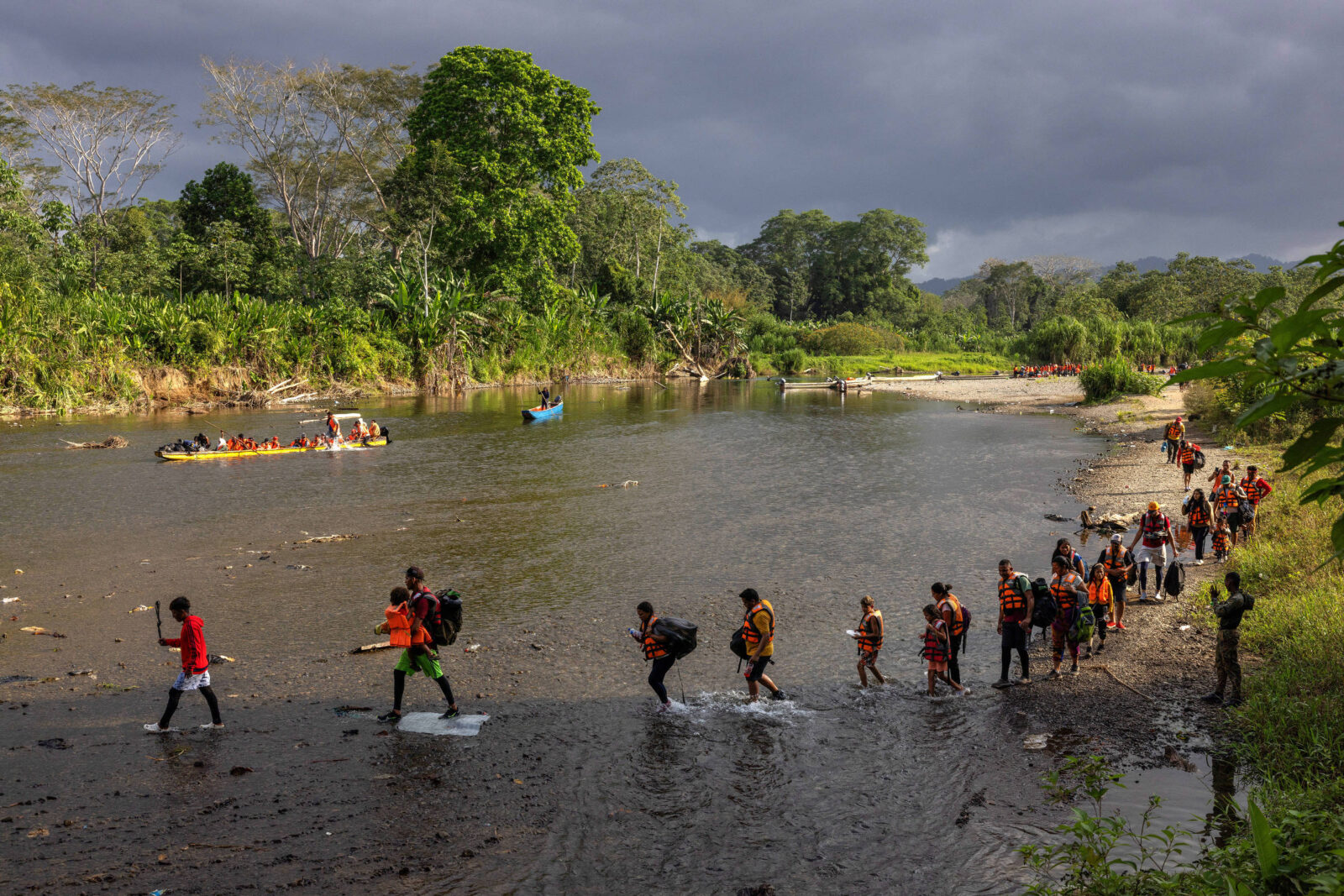 Lalo afirma que o maior desafio da reportagem foi acessar os locais específicos onde chegam os migrantes, no final da travessia da floresta. No último trecho, eles costumam cruzar o rio Tuqueza por meio de piráguas, canoas com capacidade para carregar em média 15 pessoas.