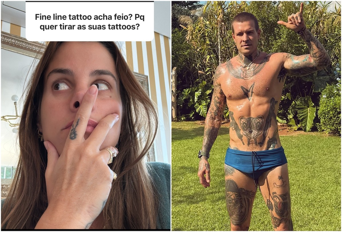 “Ele diz que se tivesse uma máquina tipo de bronzeamento artificial, que você entrasse uma vez e tirasse tudo, ele tiraria, mas não sei”, comentou a influenciadora, ressaltando que o parceiro tem o costuma oscilar. “Ele muda de opinião o tempo todo.” Mateus tem tatuagens em várias partes do corpo, incluindo nas axilas.