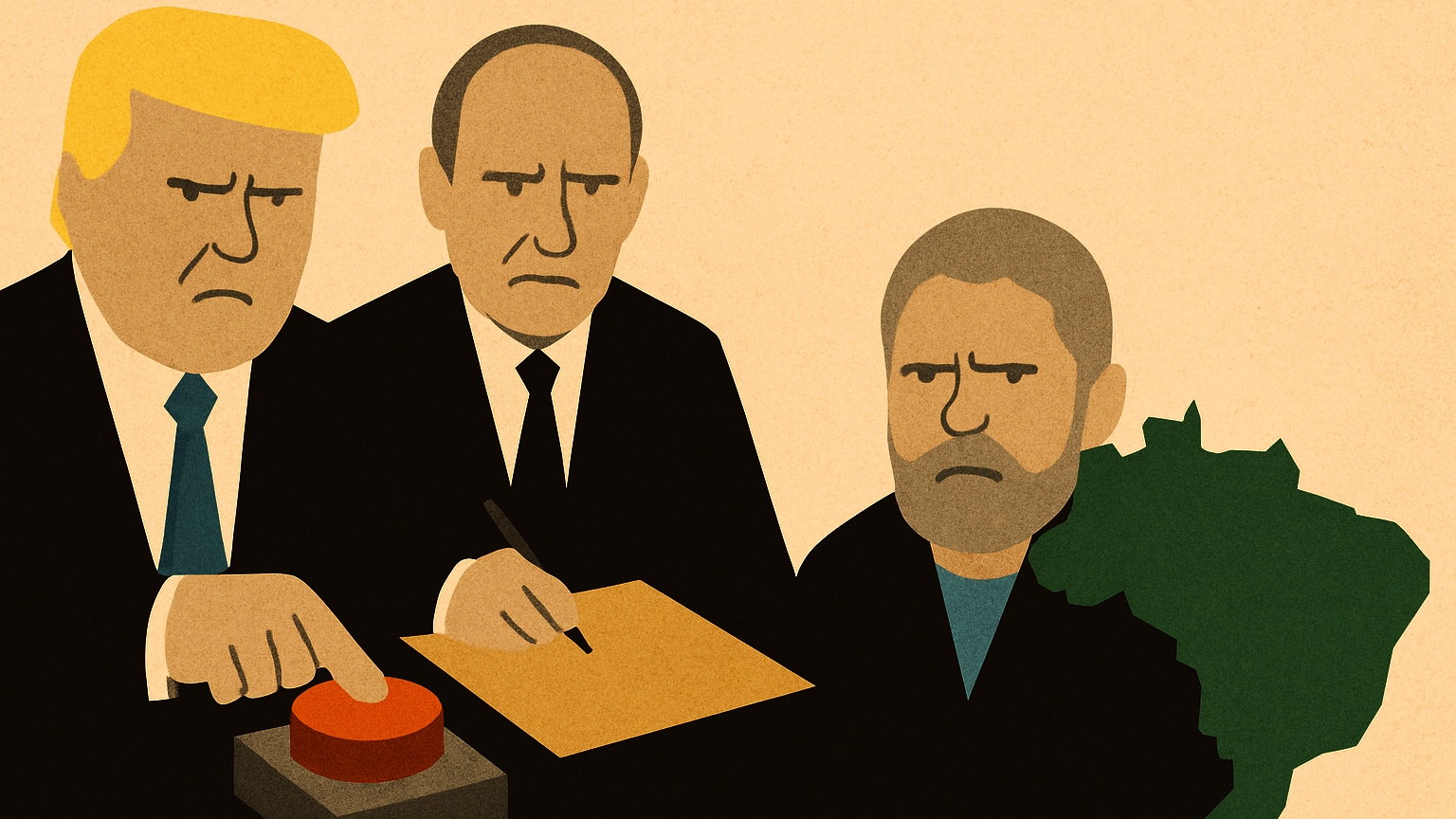 Num mundo em que Trump, Putin, Moraes e Lula têm plateia e caneta na mão (e dois deles, um botão vermelho ao alcance dos dedos), há chance de que inocentes sejam atingidos. Podemos ter uma nova rodada de estragos a qualquer momento. Mas vamos limitar o olhar à economia do Brasil e a uma questão que pode emergir nas próximas horas ou dias. O resumo é este: se o tarifaço de 50% já bloqueava negócios de vários setores brasileiros com os Estados Unidos, pode ficar muito pior, e para todos, caso o presidente norte-americano decida embargar a Rússia.
