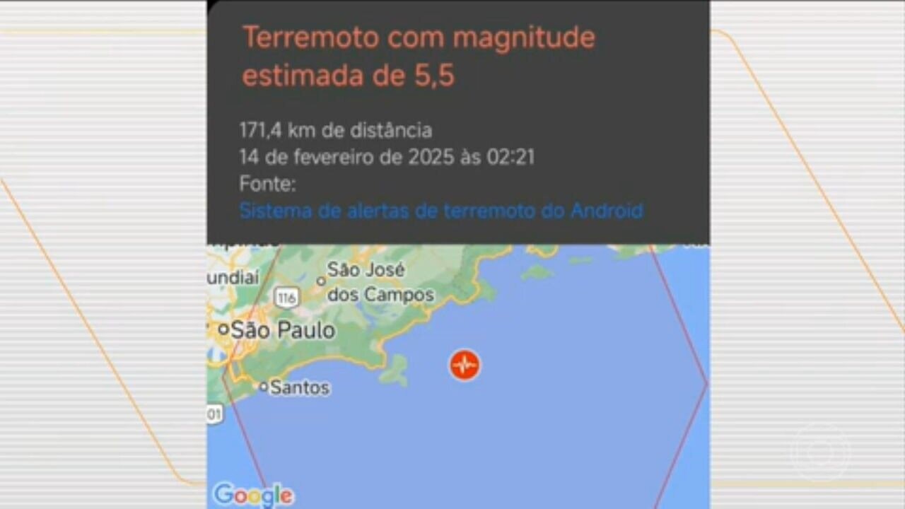 O alerta do suposto terremoto no litoral de São Paulo foi emitido pelo Sistema de Alertas de Terremoto do Android.