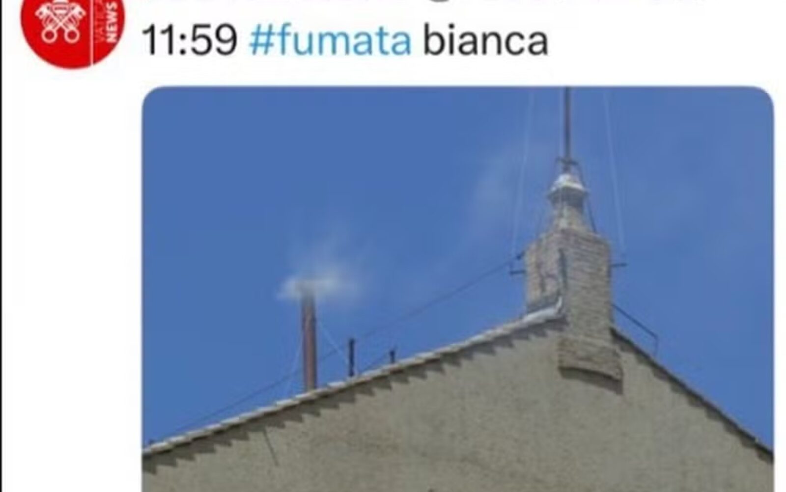 Vaticano publicou em suas redes sociais que a fumaça da votação desta manhã teria sido branca — o que é um sinal de que os cardeais tinham escolhido um novo papa. No entanto, a fumaça foi preta e haverá nova votação. No X, Vaticano postou que nesta manhã fumaça tinha sido branca