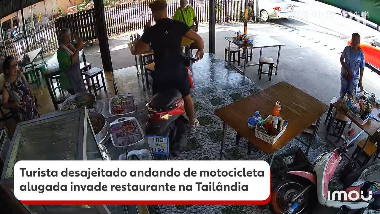 Lar Turismo VÍDEO: Turista desajeitado invade restaurante com motocicleta alugada na Tailândia | Turismo e Viagem
